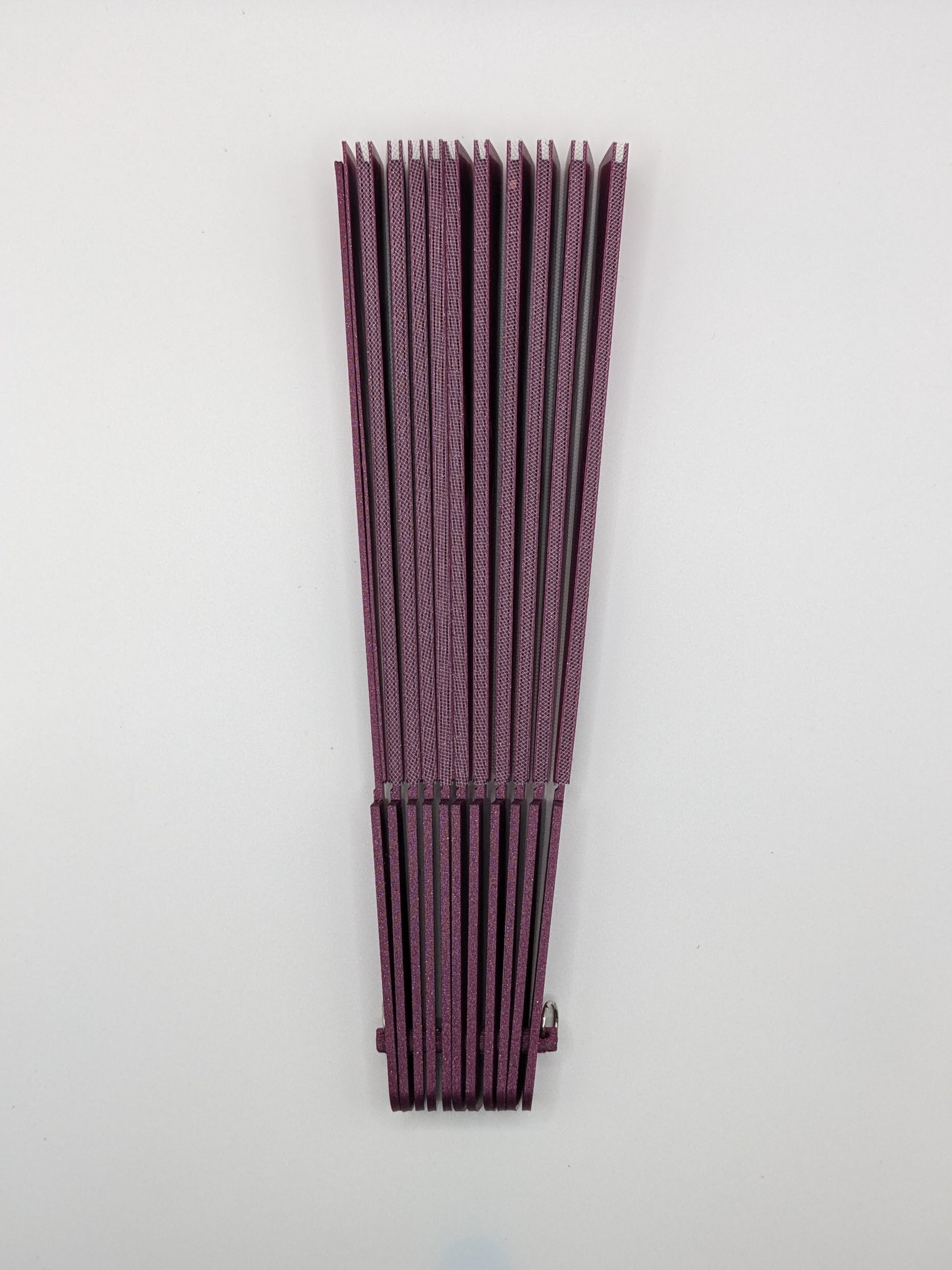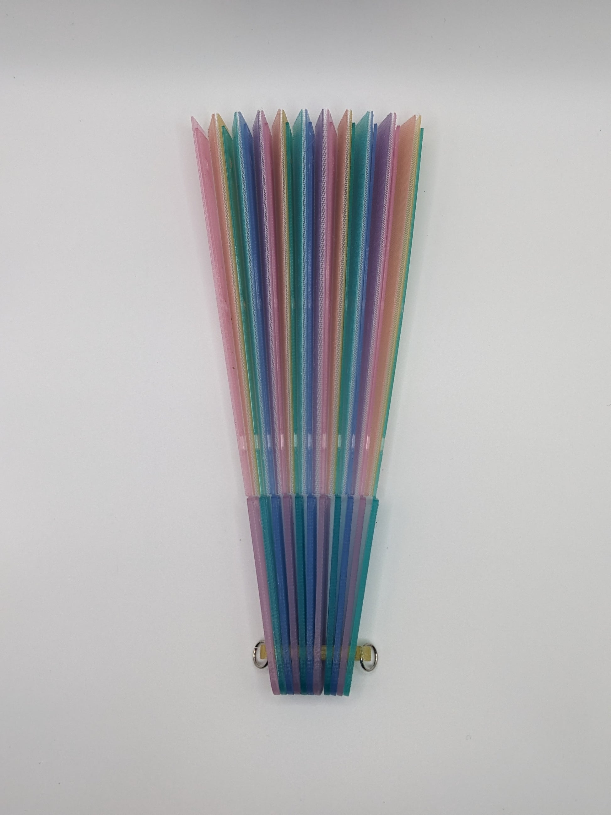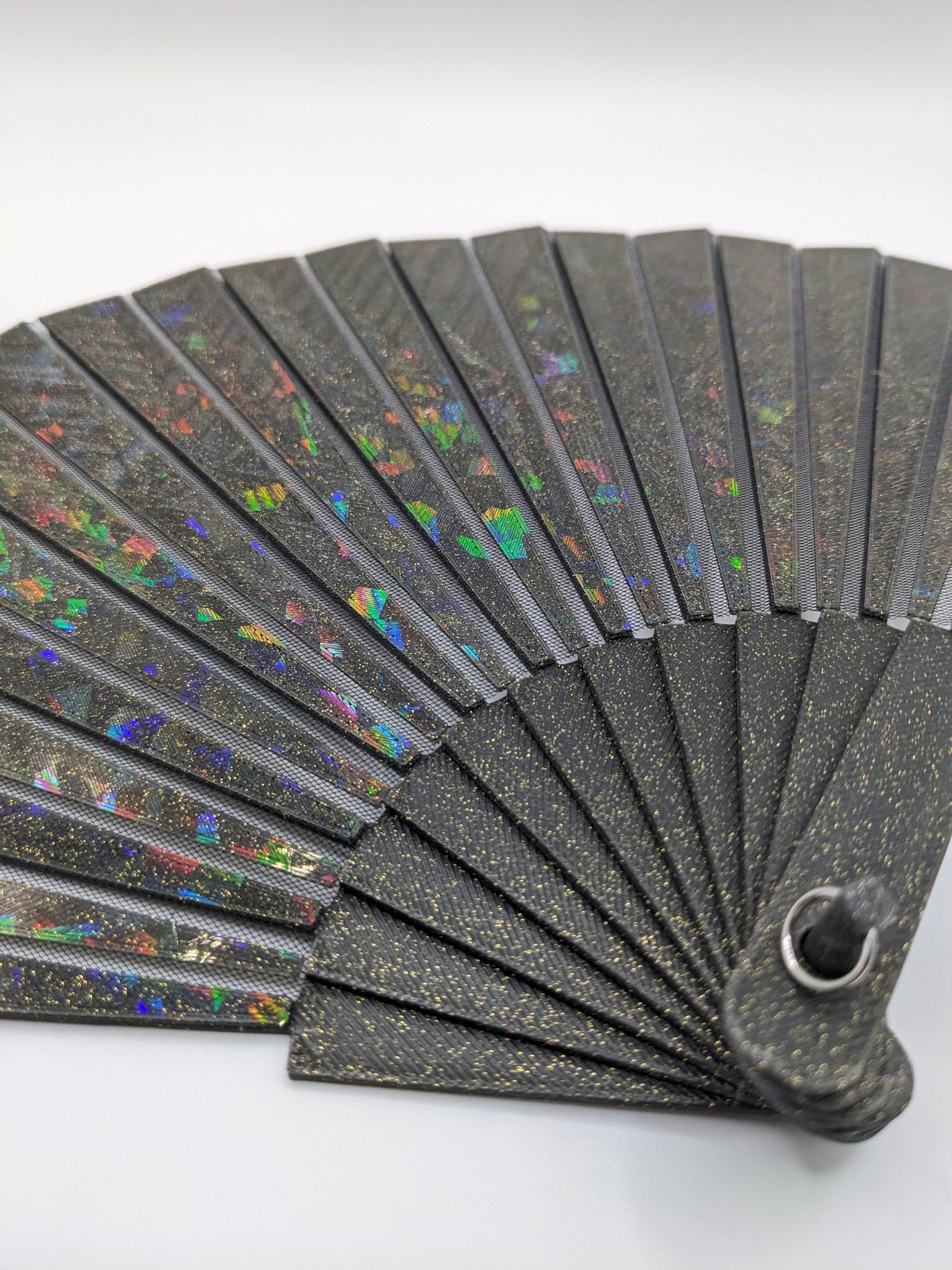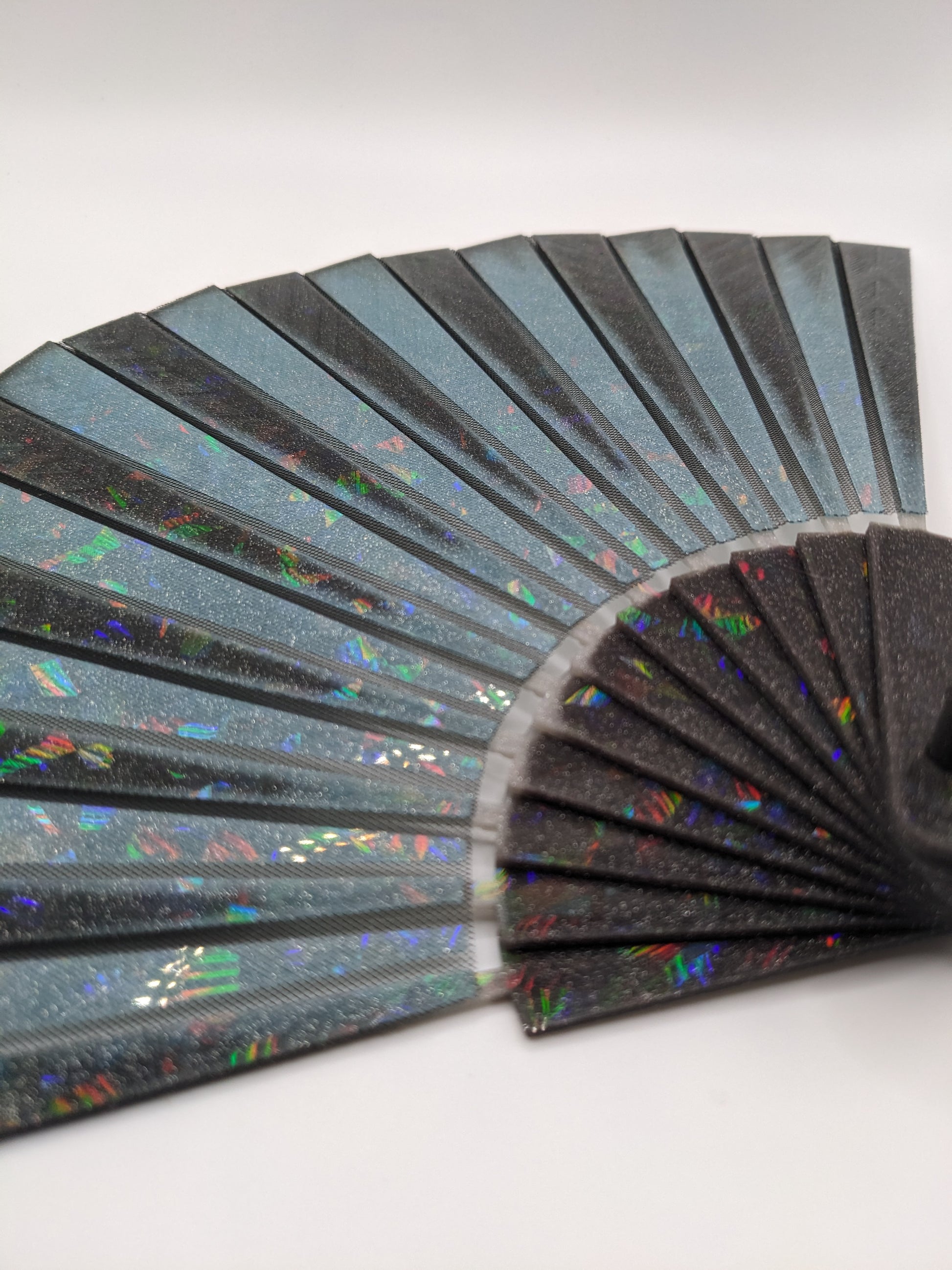 Stay cool with a 3D printed hand fan! Stylish, functional, and easy to deploy. These essential summer accessories were printed on our holographic PFLAT sheets to give an eye catching shimmer effect. Fabric is embedded within the print itself, enabling a durable folding mechanism.